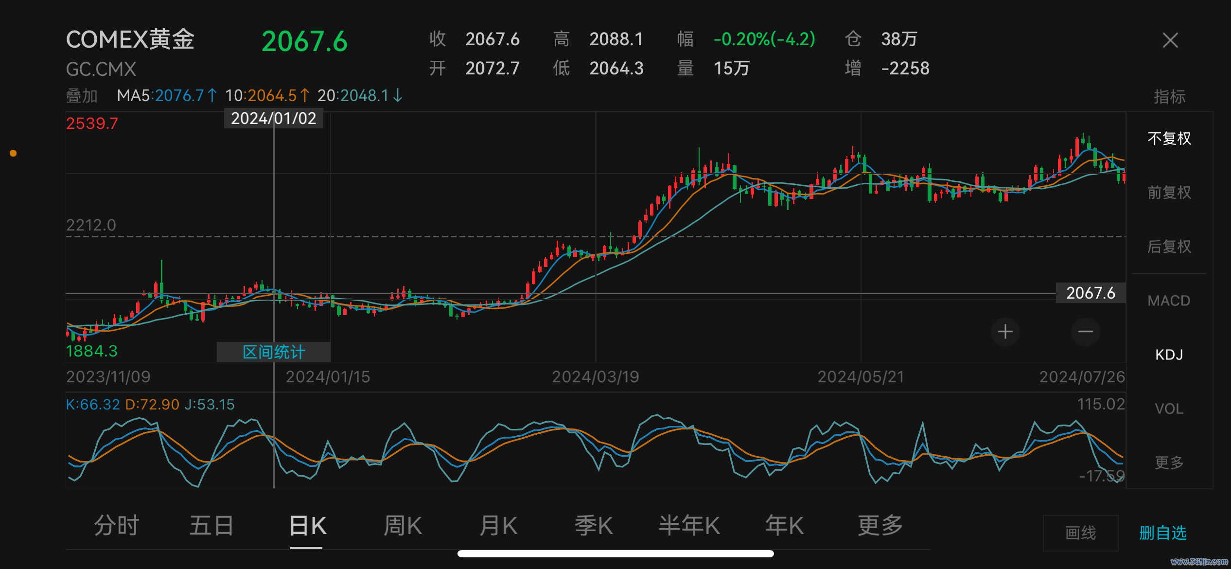 实际上,自2024年以来,金价走出了一轮大牛市。Wind数据显示,截至11月7日,COMEX黄金收于每盎司2714美元,对比今年年初上涨了646.4美元/盎司(2024年1月2日,COMEX黄金价格约为2067.6美元/盎司)。