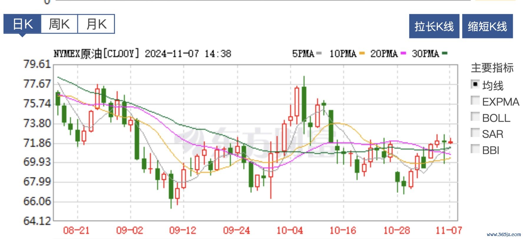 正如上述所说,由于投资者消化美国大选结果,以及美联储再次降息,国际油价转跌为升。数据显示,截至11月7日,美油12月合约涨0.93%,收于每桶72.36美元;布油2025年1月合约涨幅0.95%,报桶75.63美元。
